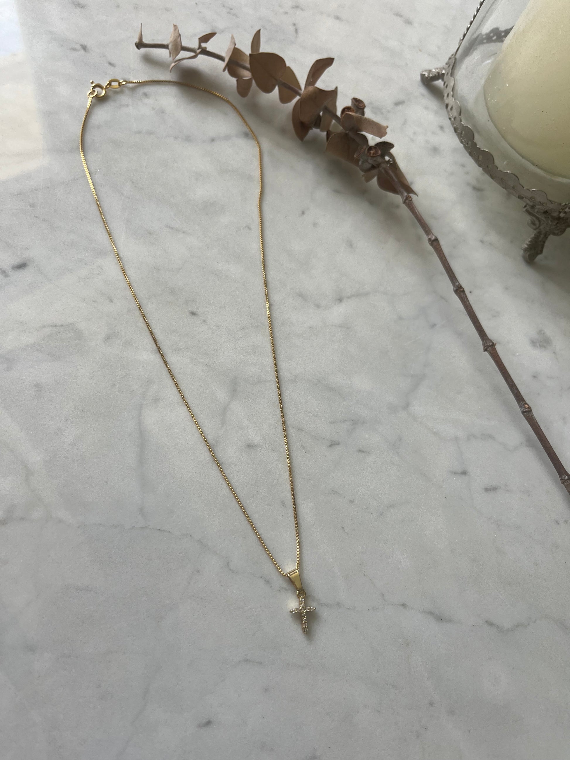 Cadena 45cm baño de oro 24k con mini cruz circones