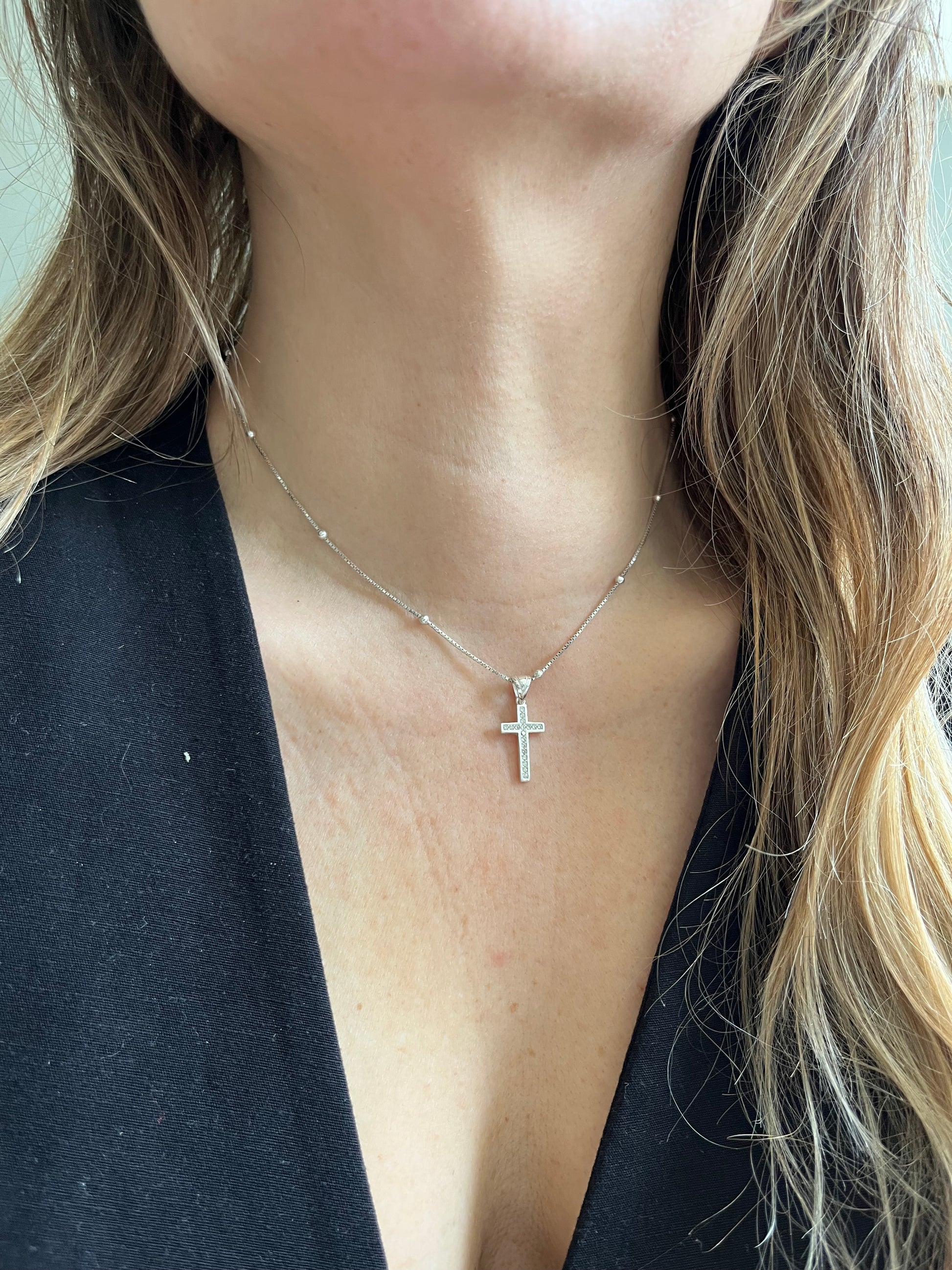 Cadena de plata 925 de 40 cm con diseño de bolitas, delicada y versátil. Su estilo clásico con un toque moderno la convierte en un accesorio perfecto para usar sola o combinar con dijes. Liviana, elegante y cómoda, es ideal para acompañar cualquier look, desde el día a día hasta ocasiones especiales